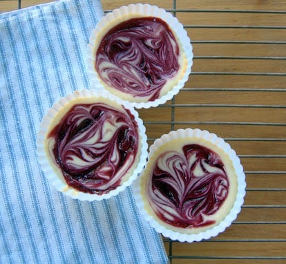 - Place one tablespoonful of cheesecake batter onto each crust.